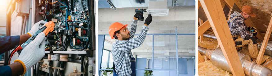 Technicians install heating and cooling systems, ductwork, and ventilation systems following blueprints and safety codes.